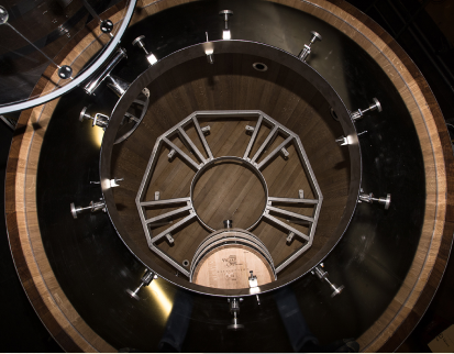 Il en résulte un contenant de 7 000 litres, fait de bois et d’inox, conçu pour pouvoir accueillir en son sein 5 barriques de 200 litres. Ce dispositif permet au vin qu’elles contiennent de profiter d’un environnement d’élevage unique, sans aucune influence extérieure : 100% d’humidité et aucune trace d’oxygène.